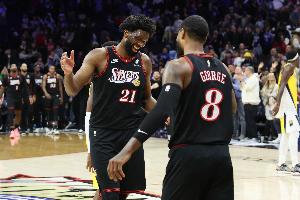 76人官方更新了球队伤情,保罗·乔治(左膝伤病管理)、恩比德(左膝伤病管理)本场比赛出战成疑。