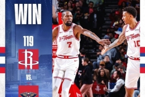 体育资讯1月19日讯 NBA常规赛,火箭119-110力克鹈鹕。