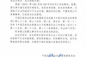 体育资讯01月29日讯 足协发布“假赌黑”整治处罚结果,原天津天海足球俱乐部球员张鹭,违背体育道德、丧失体育精神、为谋取不正当利益进行不正当交易;操控足球比赛,严重违背公平竞赛精神,引起恶劣社会影响,被终身禁赛。
