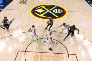 GIF-篮网挑战夏普掩护犯规 成功后小波特三分算进里外里6分
