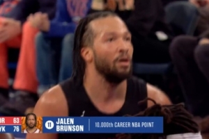 第三节布伦森罚球拿到本场第20分,这是他生涯的第10000分。