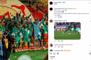 帕佩·盖耶也在赛后通过社媒晒出全队捧杯照,并配文:“非洲冠军⭐️⭐️#任务完成✅感谢真主🤲🏿感谢大家的支持,迫不及待想回国和你们一起庆祝❤️!!!”