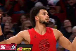 GIF-卡马拉空位三分 开拓者一波18-4打停骑士