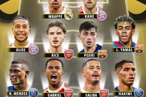 奥利塞(拜仁)、赖斯(阿森纳)、佩德里(巴萨)、亚马尔(巴萨)