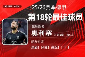 第18轮评选结果出炉,奥利塞替补登场1球3助完美发挥,帮助拜仁5-1逆转大胜莱比锡,当选【体育资讯X小红书德甲第18轮最佳球员】!