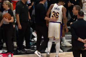 斯玛特欲遭进攻犯规 撞伤膝盖