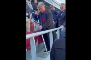 拉波尔塔主动拿起拖把,在诺坎普清理看台并和球迷们进行交流。他在此前已经主动辞职,从而为竞选新任巴萨主席做准备。