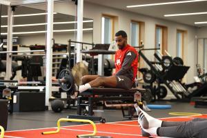 许久不见!伊萨克留了一圈络腮胡,在健身房脚部负重训练