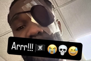 上一场对阵掘金,艾顿在第二节遭遇对手击打面部后左眼受伤退出比赛,赛后他晒出照片,自己的左眼已经被包扎好并戴上了眼罩。