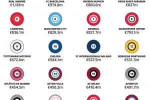 拜仁慕尼黑(8.61亿欧元)位列前三,由于参加2025年国际足联俱乐部世界杯带来的转播收入增加,其排名较去年上升两位。