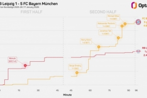 体育资讯1月18日讯 拜仁在本轮德甲5-1逆转莱比锡,拜仁在上半场0-1落后于对手。