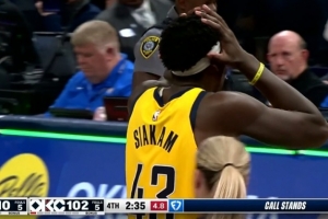 GIF-步行者挑战想拿回球权 结果送切特两罚(西亚卡姆打手)