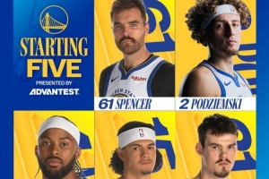 本场比赛勇士库里、追梦等7人缺席,本场比赛首发阵容为:斯潘塞、穆迪、波斯特、波杰姆斯基、桑托斯。